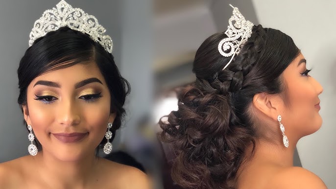 Sweet Quinceanera Hairstyles With Crown Crown Hairstyle Hairstyles Quinc Quince Hairstyles Quinceanera Hairstyles Crown Hairstyles